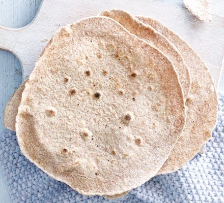 Put a medium non-stick frying pan over a excessive warmth and, as soon as sizzling, add one of many flatbreads. Cook dinner for about 30 secs, then flip over and cook dinner on the opposite aspect for 30 secs. Press the flatbread with a spatula whereas cooking to encourage it to puff up and cook dinner inside – it needs to be evenly browned in patches and look pretty dry, with out being crisp. Repeat with the remaining flatbreads, holding them heat by wrapping in a clear tea towel till wanted.